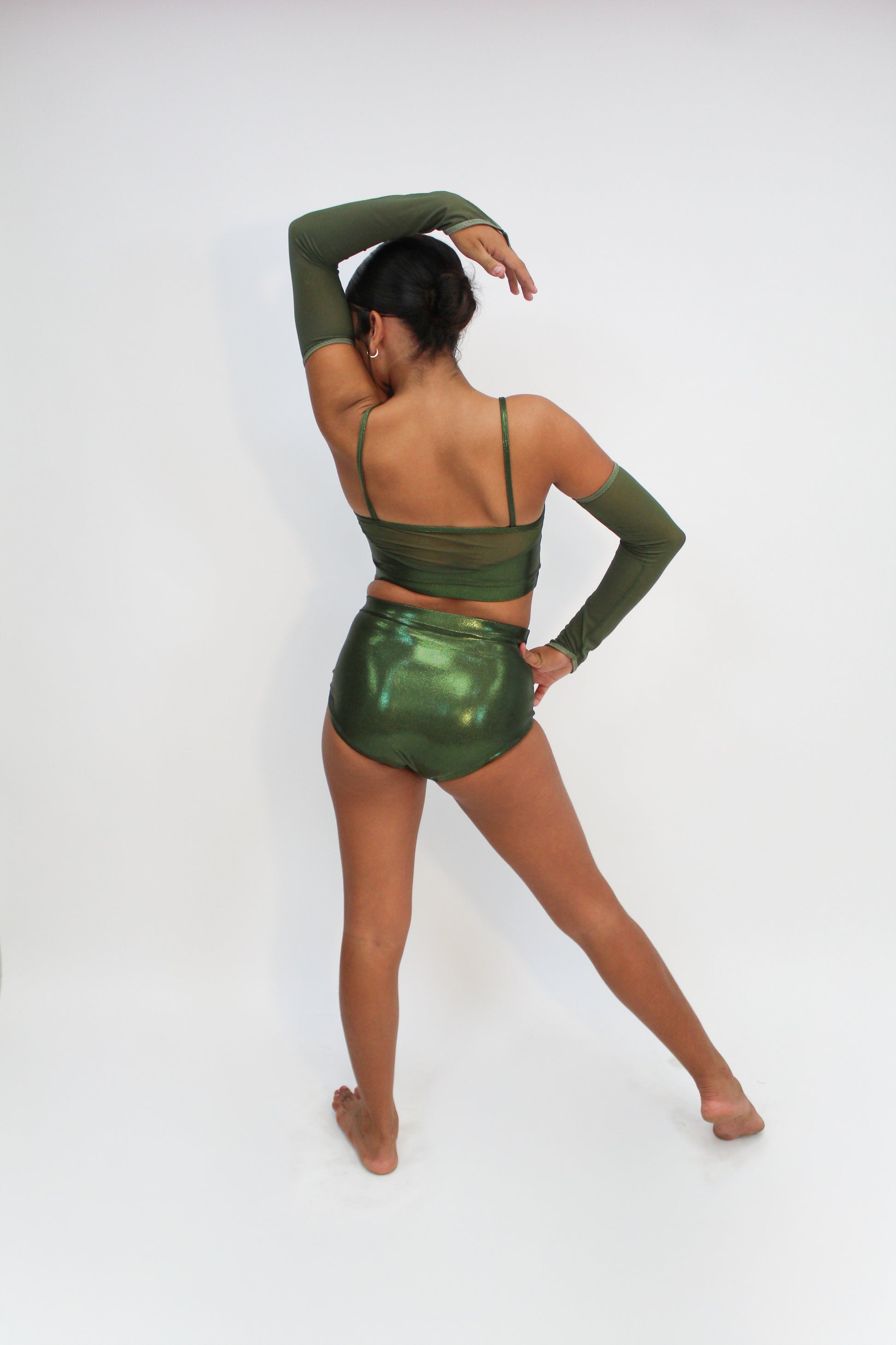 Only sold as a set (top + brief). Ships unembellished. Detached sleeves and attached skirts/pants are optional add-ons to the brief. Model is wearing Gauntlet Sleeves add-on.