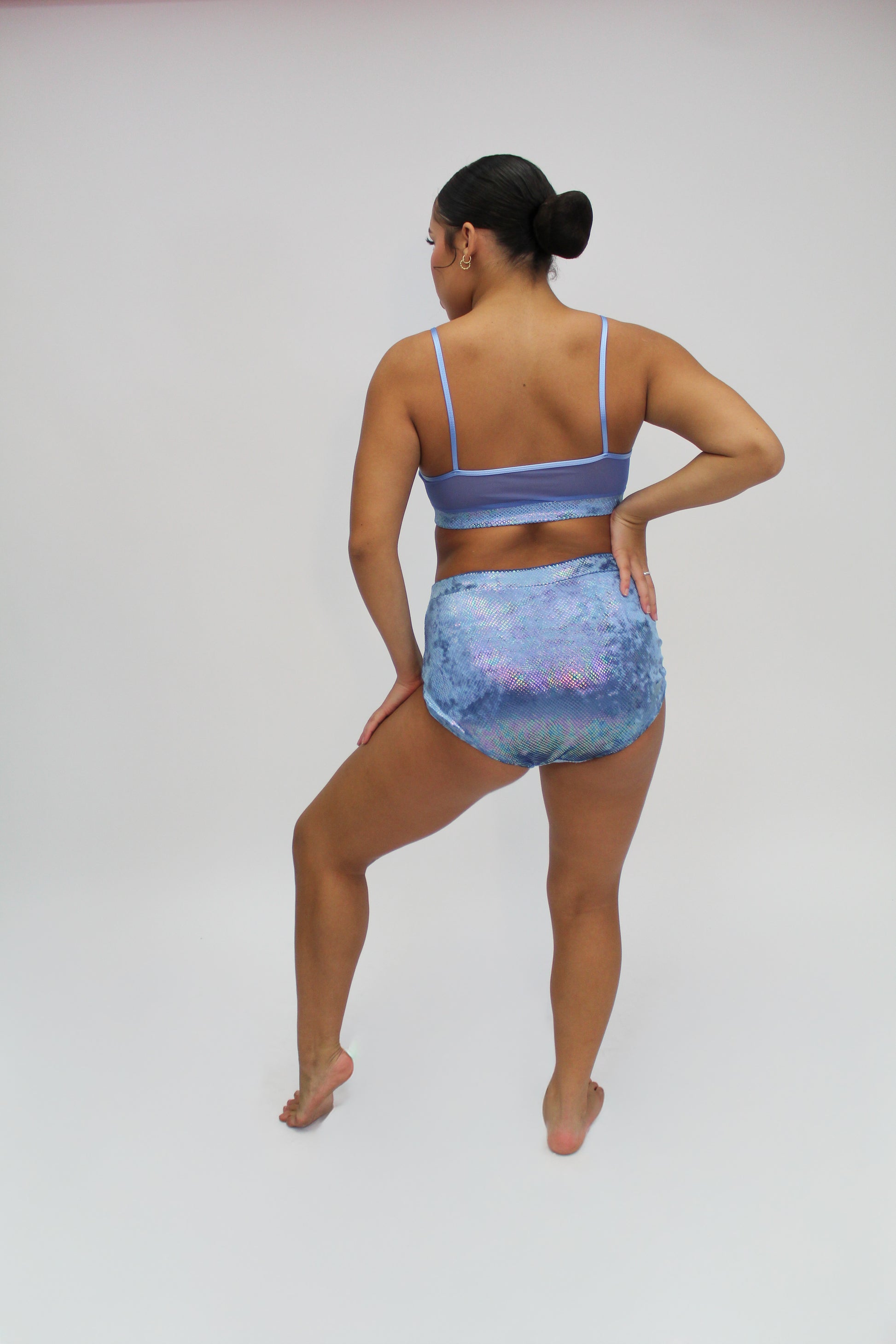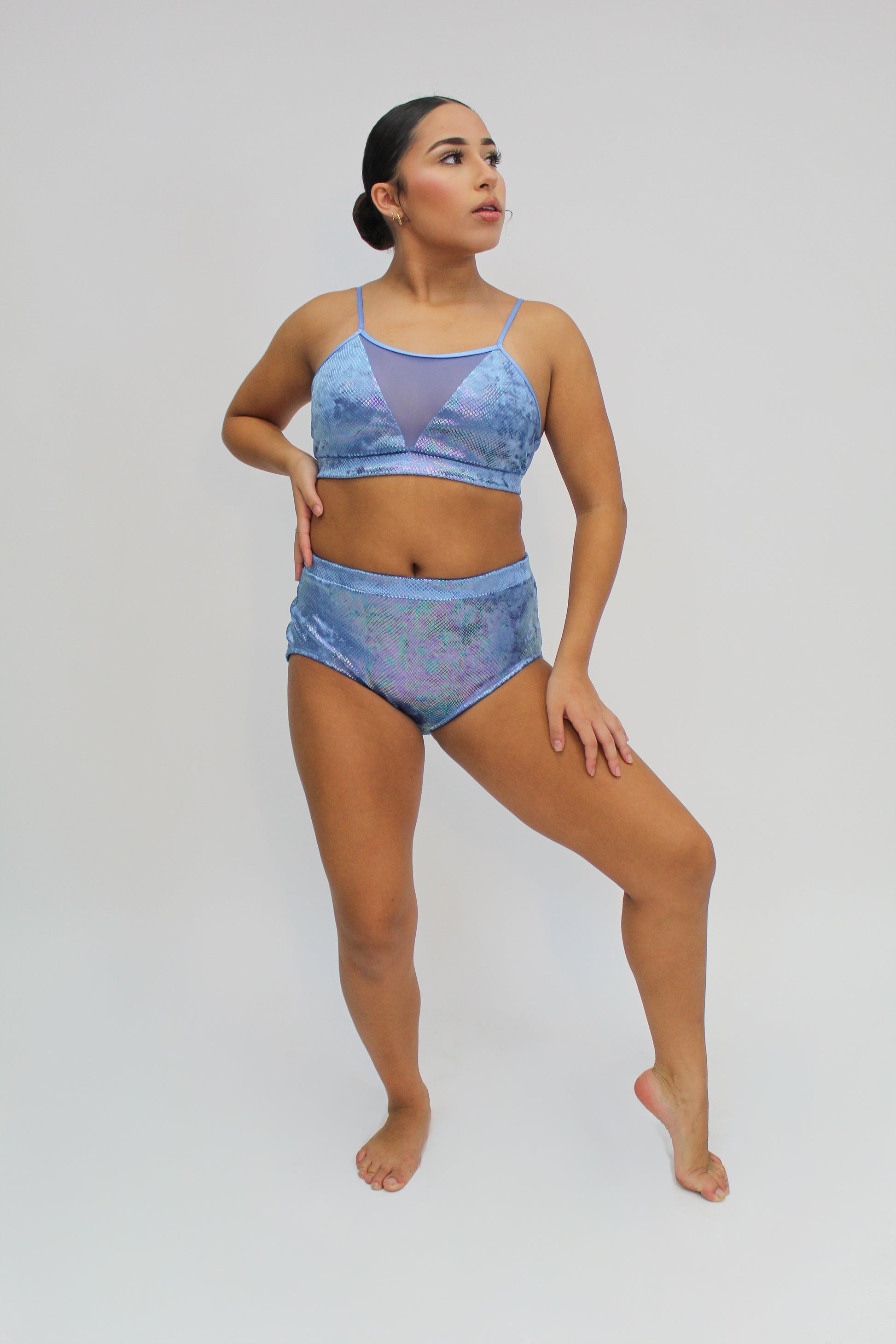 Riffline is a sleek set designed for dancers who demand both style and function. The top features a flattering V-mesh inset framed by clean lines and delicate straps, while the matching brief offers secure coverage and a sculpted fit that moves effortlessly with you.